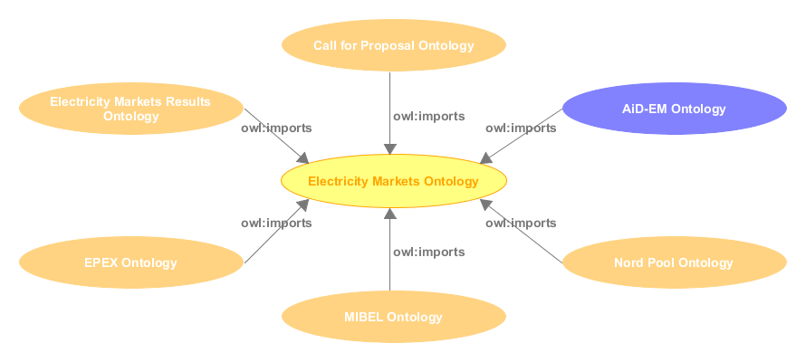 The Electricity Markets Ontology is the base ontology imported by all the remaining ontologies. Concepts present in this ontology must be abstract enough to be reused by other ontologies and further extended in each of the EM ontologies, namely the EPEX, MIBEL and Nord Pool ontologies.
